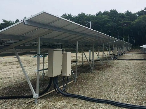 Kingfeels Energy hat in Japan ein Bodensolarinstallationssystemprojekt installiert und den Wechselrichter mit einer Gesamtleistung von 2 MW direkt auf der Modulstruktur installiert.