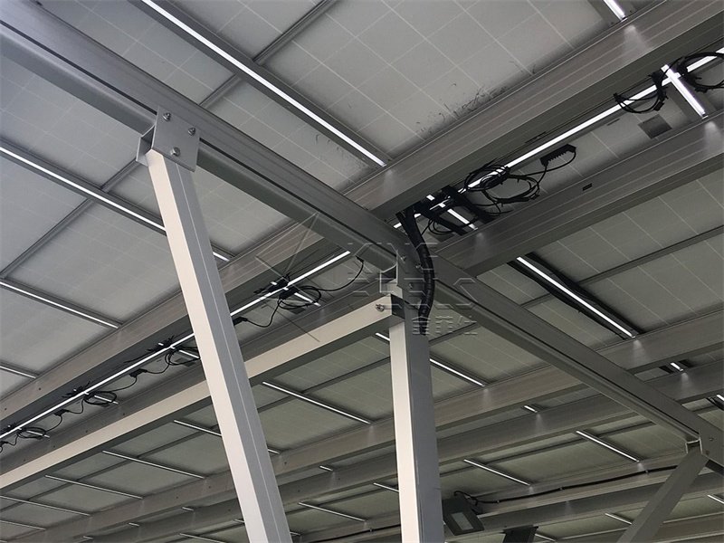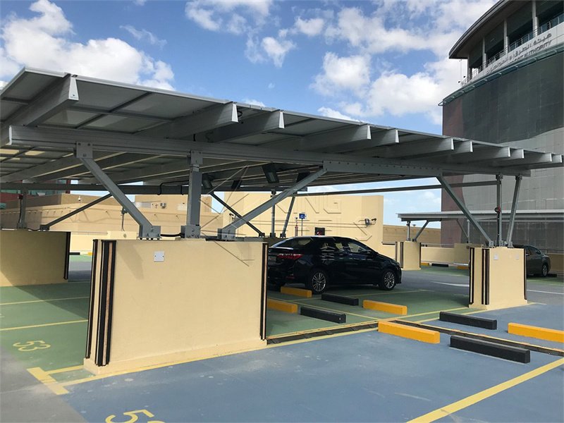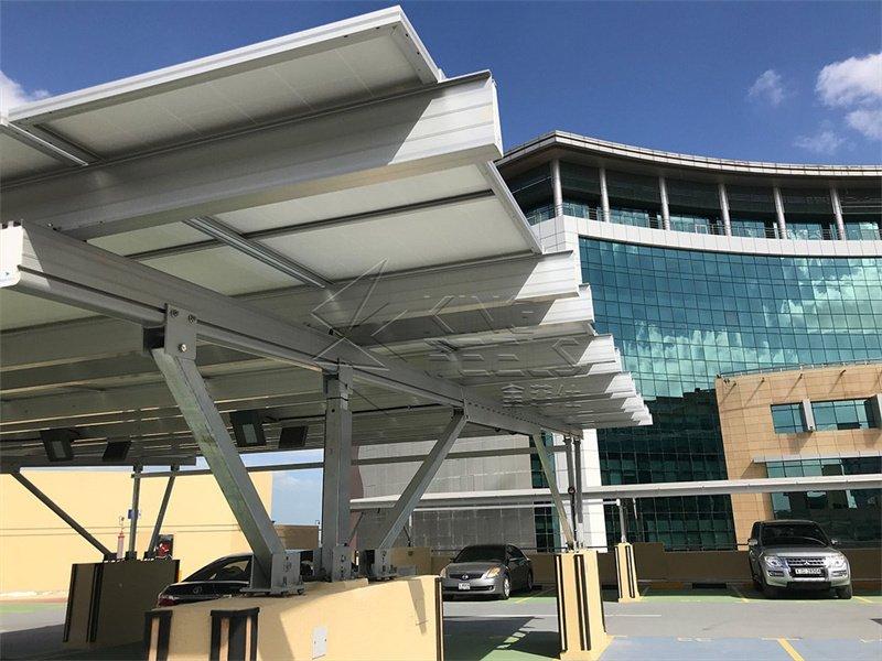 Kingfeels Solar Carport mit Aluminiumstruktur ist für Wohn- und Gewerbezwecke geeignet. Die meisten seiner Komponenten werden im Werk hochgradig zusammengebaut, was Installationszeit und -kosten spart.
